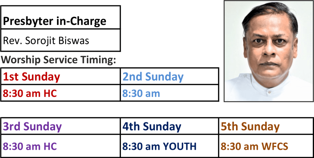 182-B, Bidhan Sarani, Kolkata-700006 : Sunday Worship Service Timing – 8:30 am